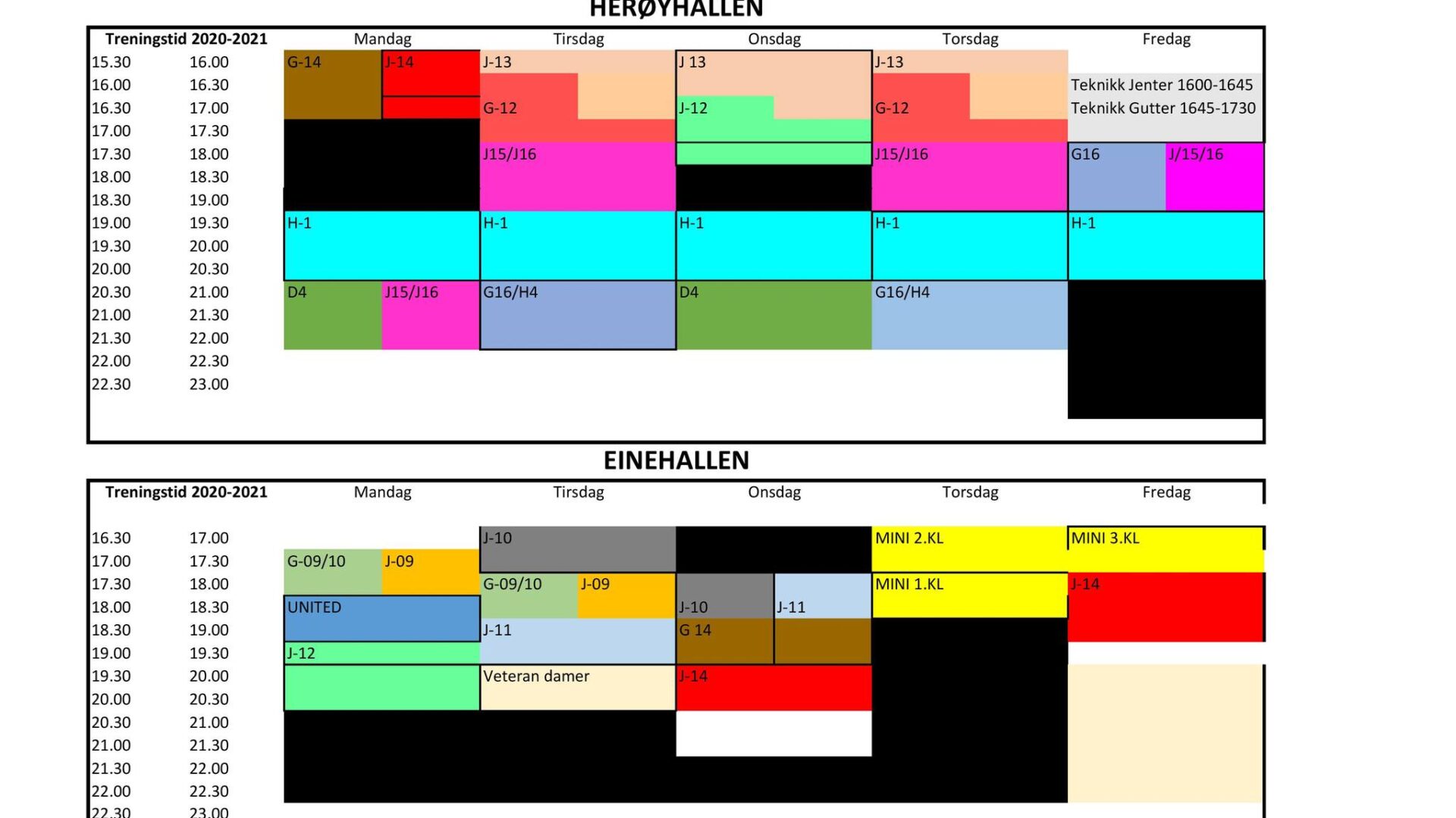 Treningstider 2023-2024