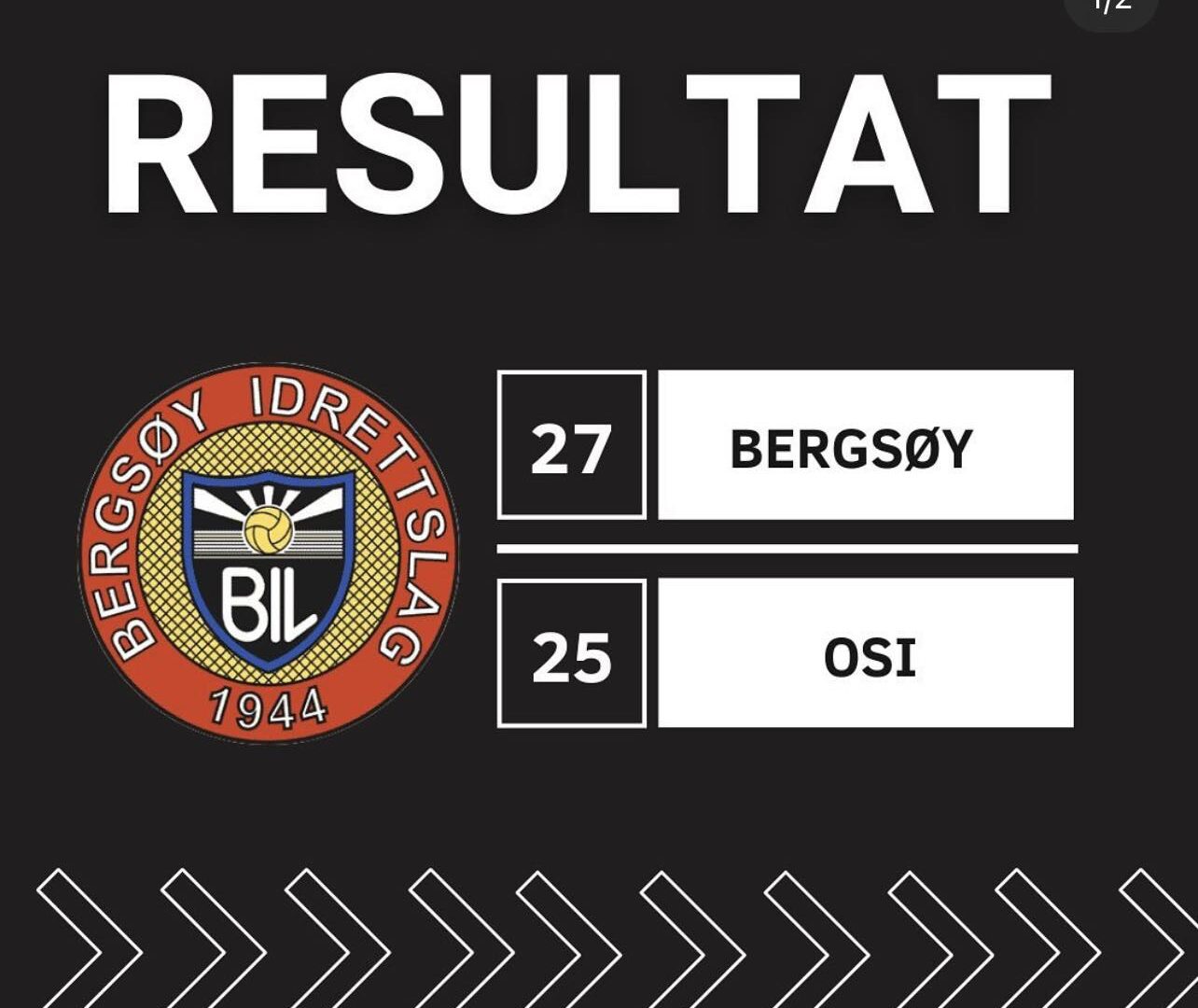 Ein jamn kamp der Bergsøy viste seg å være skarpare enn OSI, viste resultat-tavla 27-25 etter 60 spelte minutt. To viktige poeng innkassert og håpet om vidare eksistens lev vidare for gutane i kvit og raud!